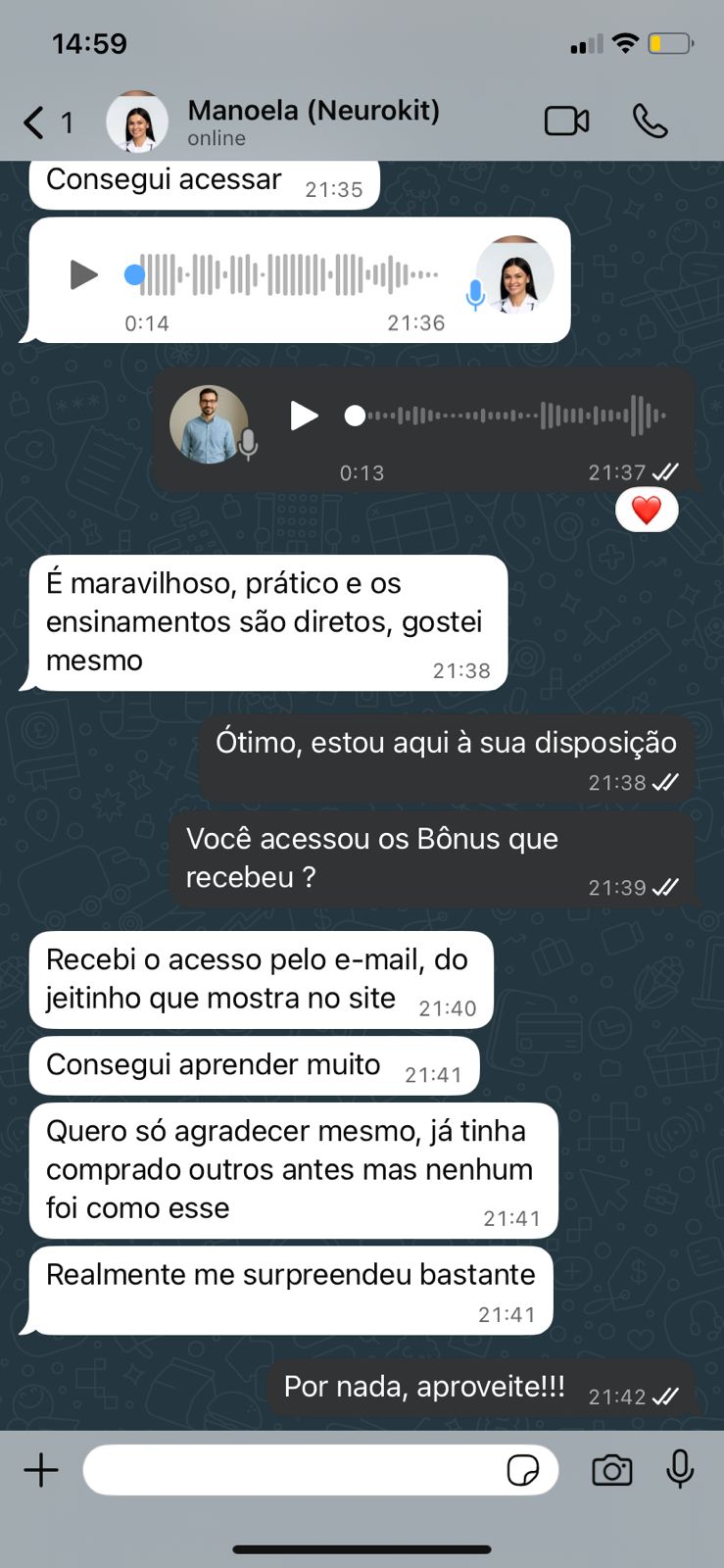 Se ainda tiver dúvidas sobre o material NeuroKit, minha equipe está disponível para te ajudar diretamente pelo WhatsApp.